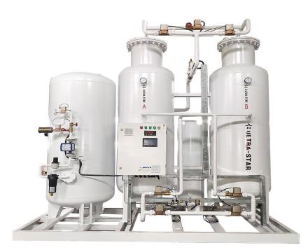 這樣,如果將吸附時間控制在1分鐘以內的話,就可以將氧和氮初步分離開來,也就是說,吸附和解吸是靠壓力差來實現的,壓力升高時吸附,壓力下降時解吸。而區分氧和氮是靠兩者被吸附的速度差,通過控制吸附時間來實現的,將時間控制的很短,氧已充分吸附,而氮還未來得及吸附,就停止了吸附過程。因而變壓吸附制氮要有壓力的變化,也要將時間控制在1分鐘以內。